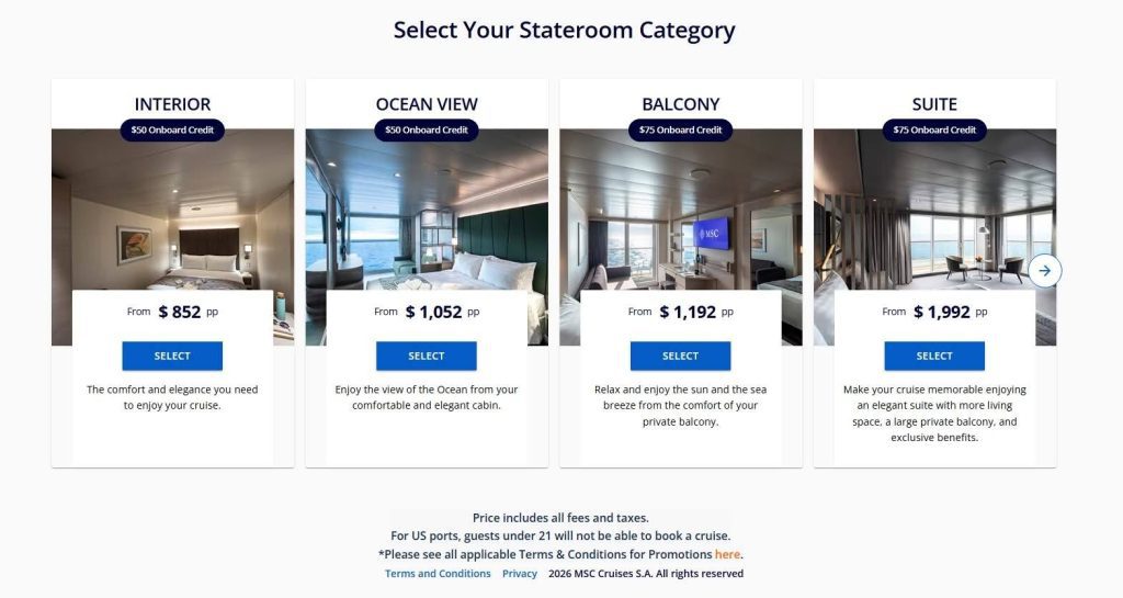 *Taxes, fees, and gratuities are included in your group cruise price.